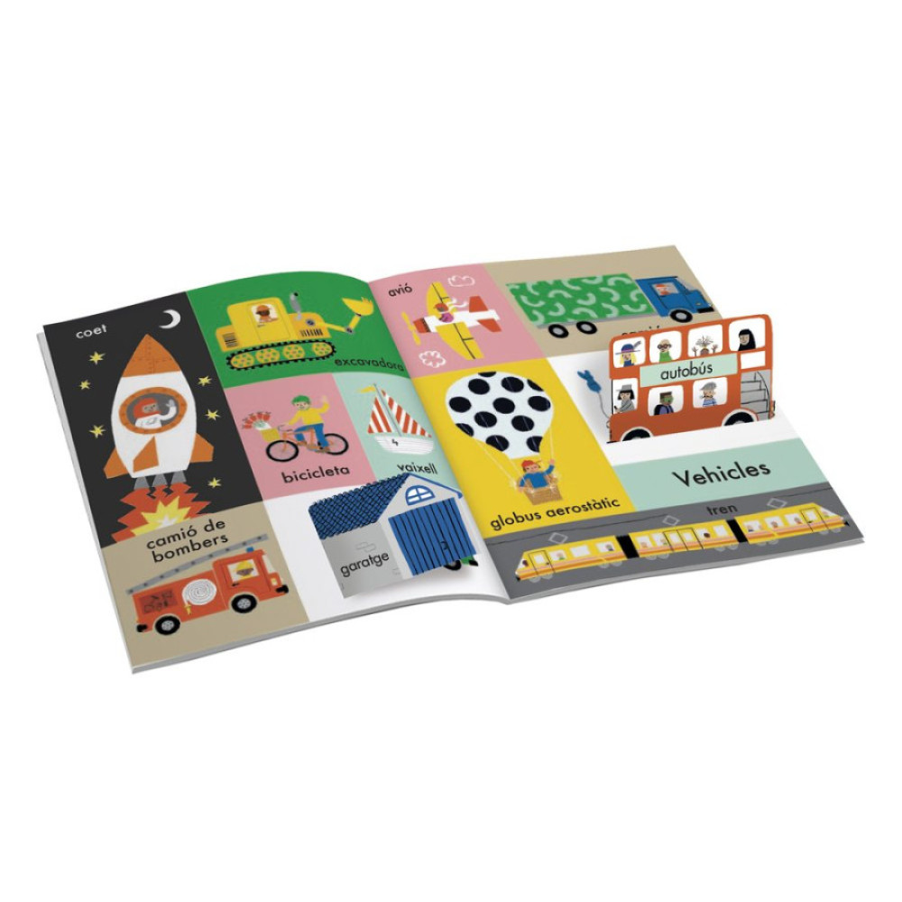 +2 ANYS Un imaginari de gran format i amb pàgines resistents que conté les primeres paraules agrupades per temes: la casa, la granja, els animals, els vehicles... Inclou solapes per trobar-hi objectes amagats!