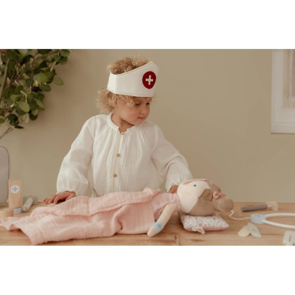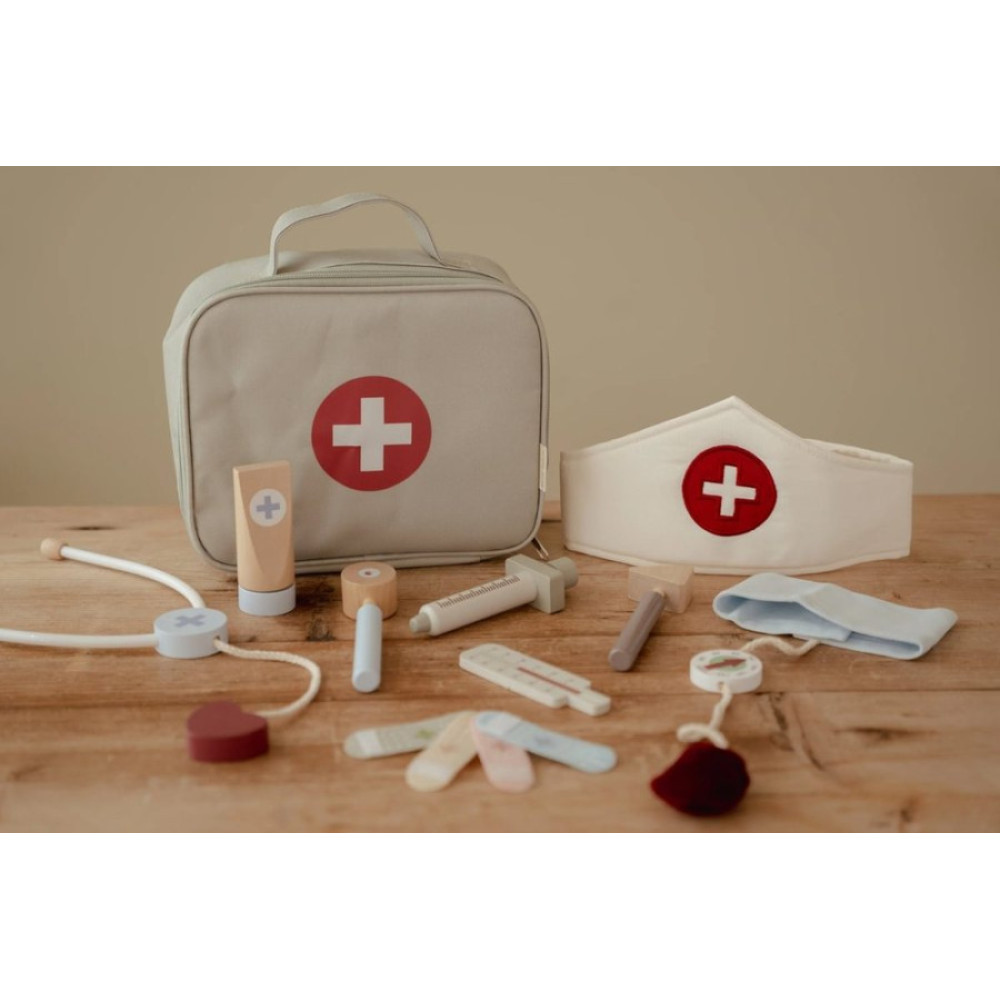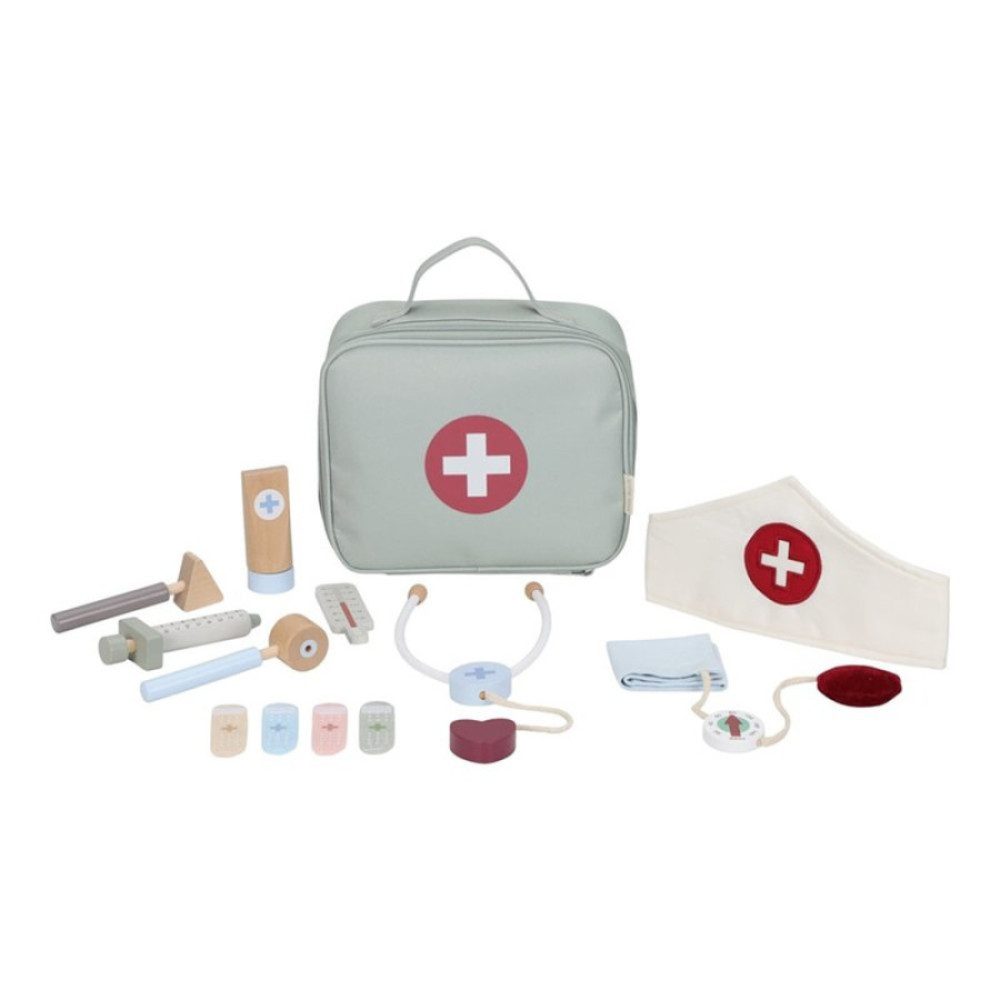 +3 AÑOS Tus pacientes se sentirán mucho mejor rápidamente cuando tengas este maletín médico a mano, listo para tomarles la temperatura, controlar su ritmo cardíaco y presión arterial, y vendar sus heridas. ¡Este juego de rol enseña a los niños que una visita al médico no da miedo en absoluto!