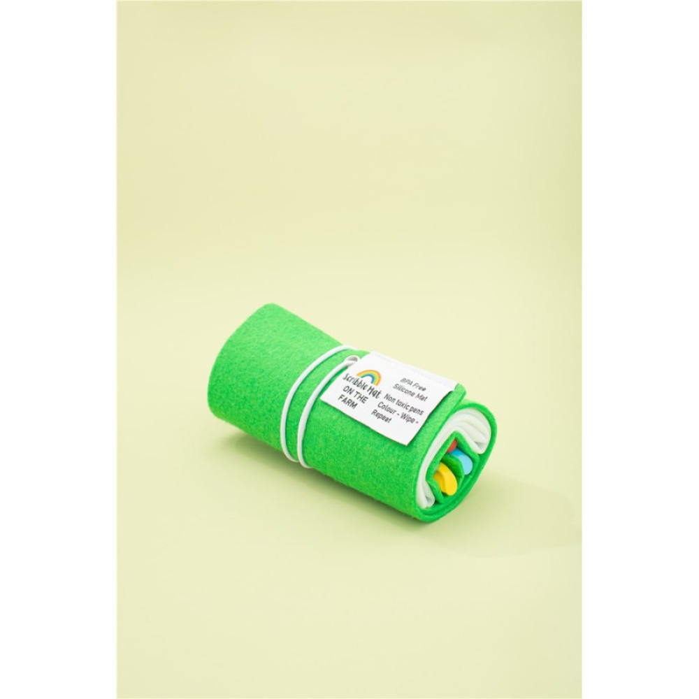 Práctica bolsita de fieltro : ¡No vuelvas a perder un lápiz con nuestra exclusiva bolsita de fieltro! Con cierre elástico, esta resistente bolsita incluye compartimentos para guardar la alfombrilla de silicona y seis lápices, ayudando a los más pequeños a mantener todo organizado al guardar sus cosas. Su diseño enrollable convierte este kit de colorear en una actividad portátil y completa para dar rienda suelta a la creatividad en cualquier lugar.