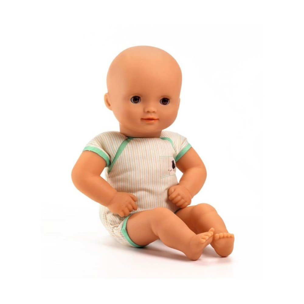 +18 MESES Con unos preciosos ojos color miel Baby Issoria es un muñeco para niños a partir de 18 meses. Su cuerpo es blandito,estampado con un body, y sus extremidades y cabeza de vinilo.