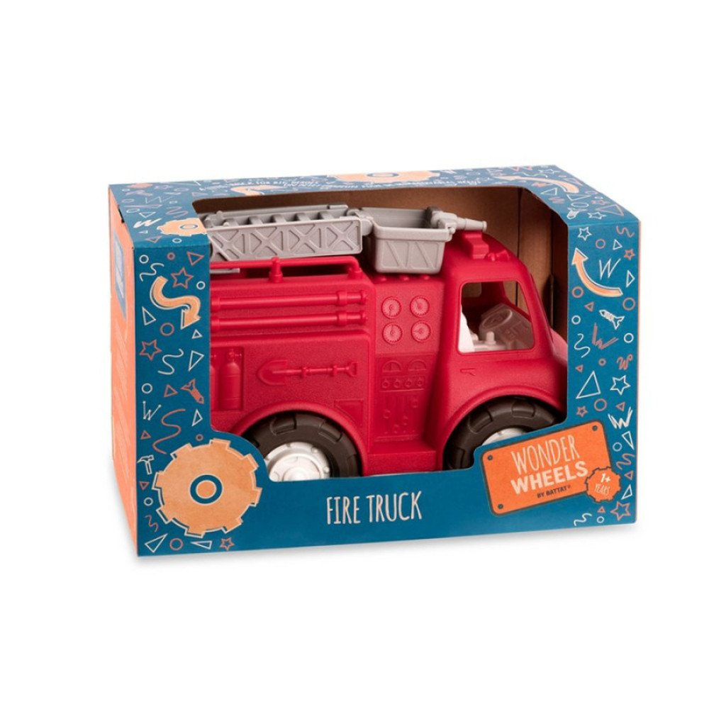 +12 MESES Camión de bomberos rojo, con toques de color azul, blanco y negro.