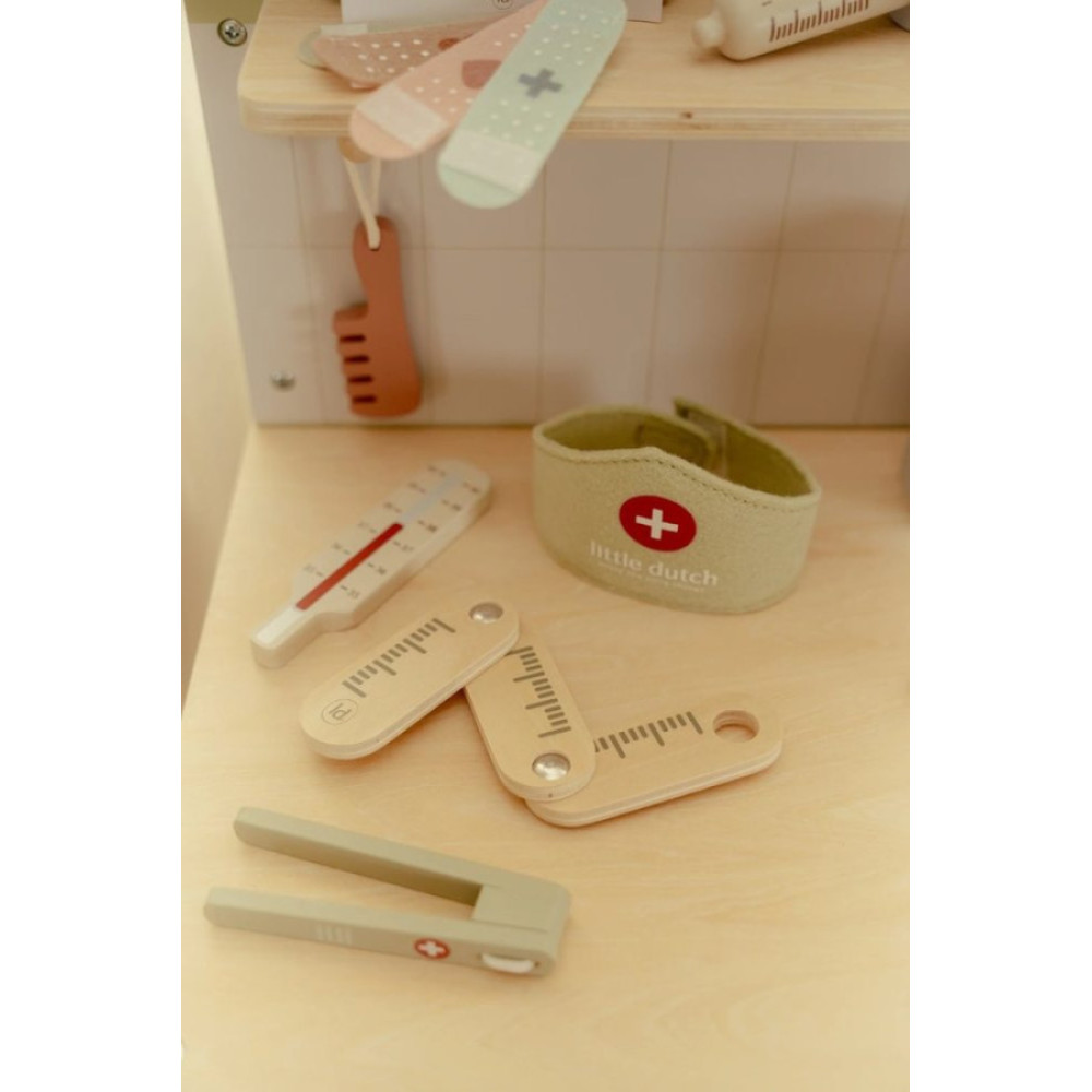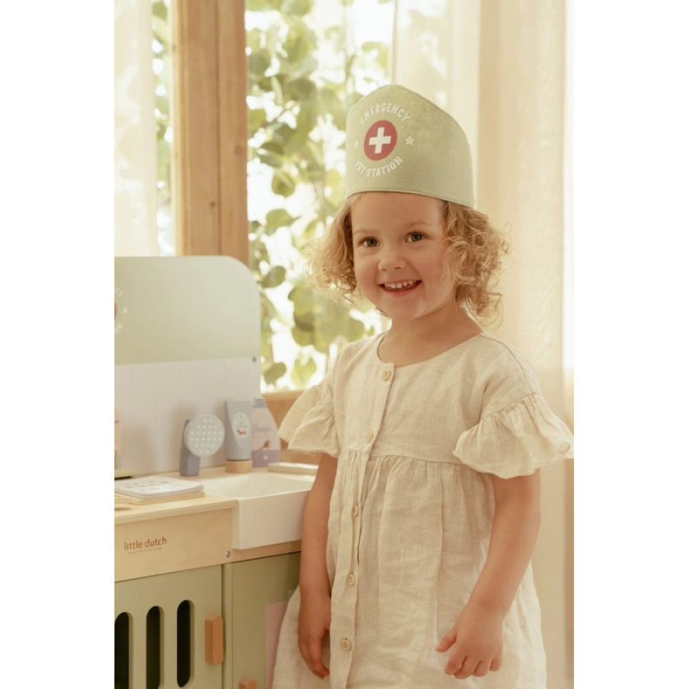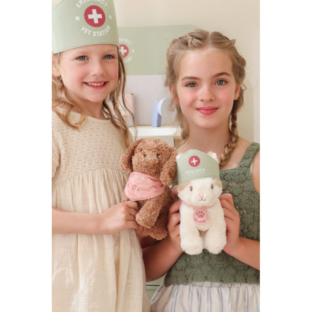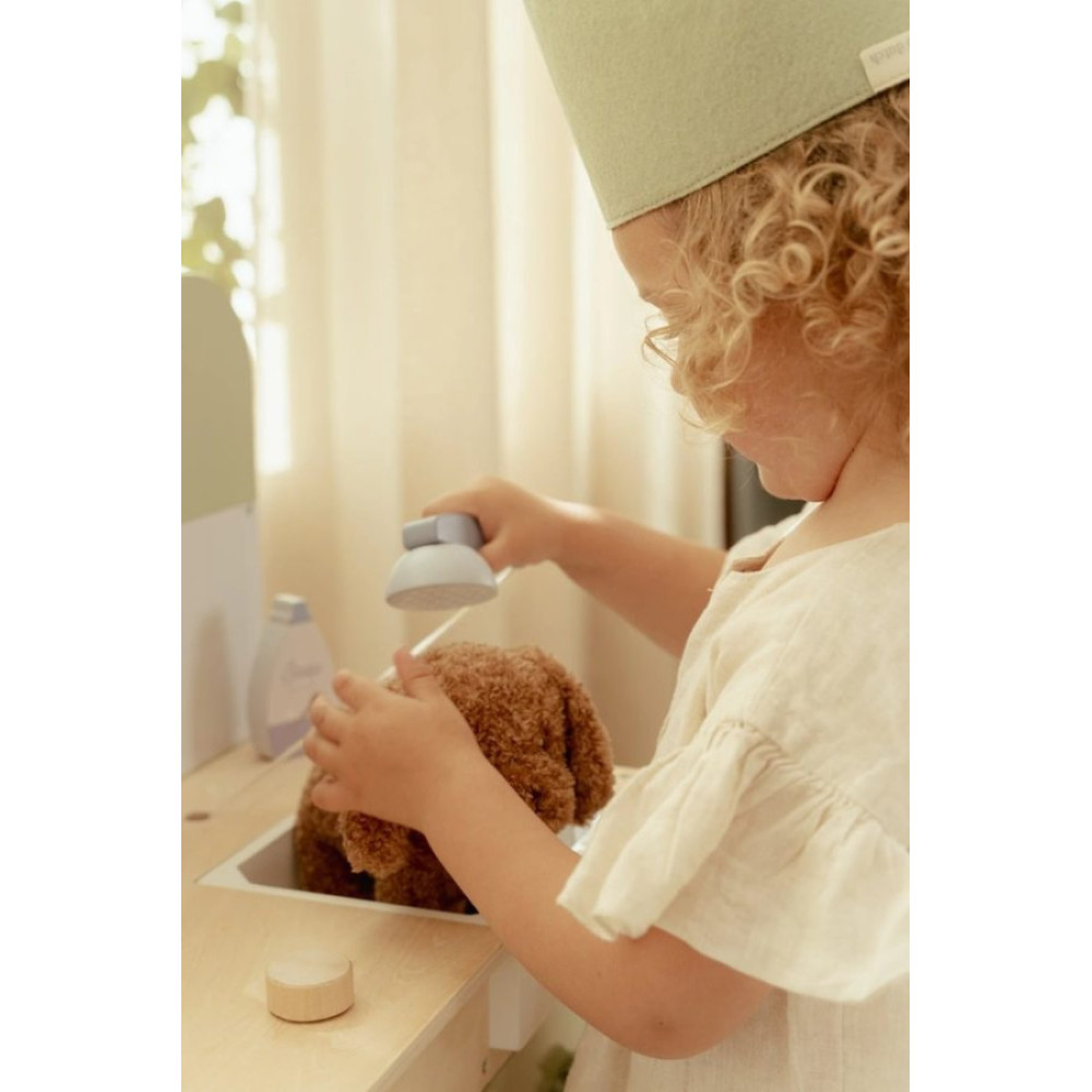 +3 AÑOS ¿Cuidas bien de peluches y mascotas de juguete enfermas? Con esta amplia clínica veterinaria de madera, tu pequeño podrá sumergirse por completo en el rol de un veterinario de verdad. El set contiene todo lo necesario para cuidar mascotas, como una ducha retráctil con lavabo, un peine, un termómetro, una jeringa y vendas. También incluye una diadema de tela y un clip especial para mostrar ilustraciones médicas y radiografías. ¡Hora del siguiente paciente!