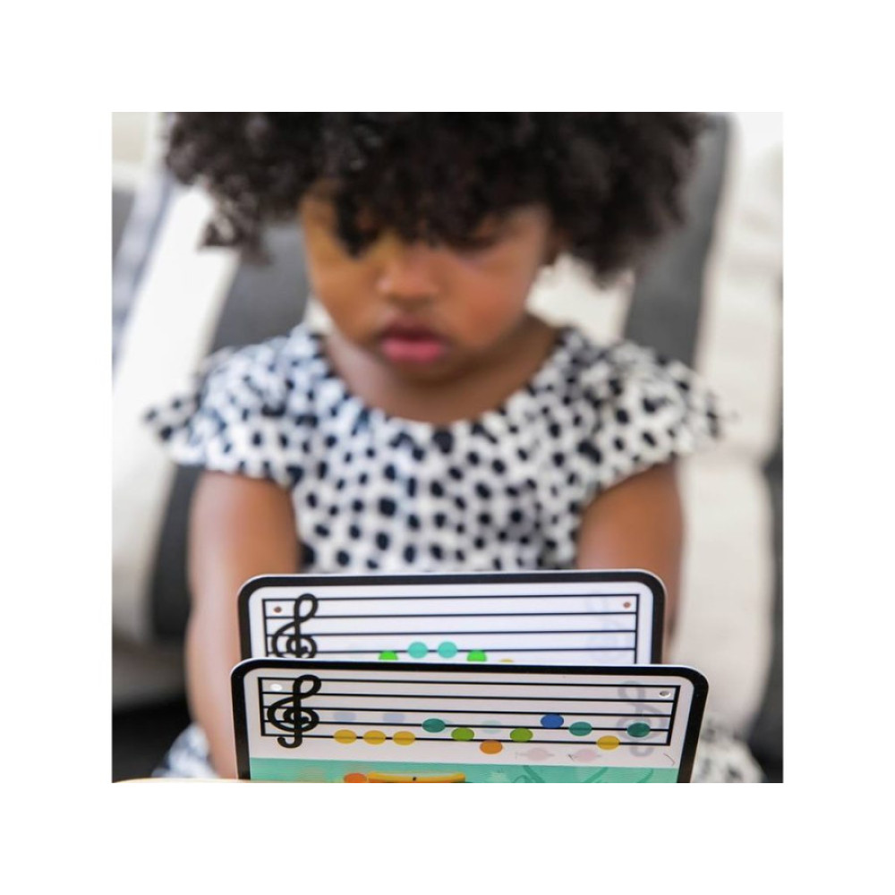 +6 MESES ¡Este piano permitirá a los pequeñines crear miles de canciones diferentes con un simple y delicado toque de dedos! Su tecnología táctil mágica permite la ausencia de botones y llaves. Además, incluye tres hojas de música especialmente diseñadas para incitar al peque a practicar su capacidad de relacionar y asociar colores con notas. ¡Es ideal para promover la sintonización de diferentes patrones rítmicos y sonidos a edades muy tempranas!