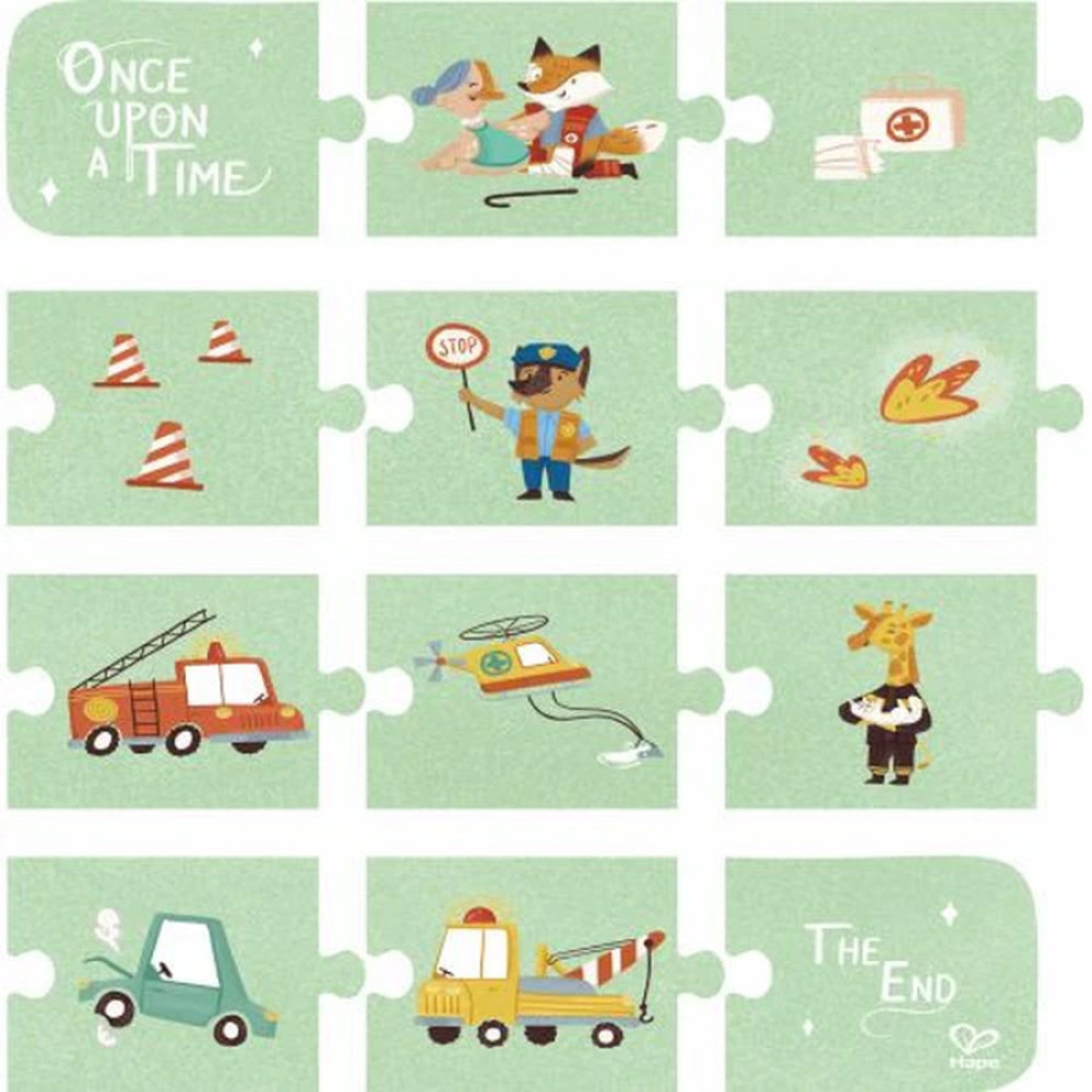 +3 A 6 AÑOS Prepárate para una aventura de rescate con este juego de puzles multipack. Consta de cuatro puzzles separados con diferentes piezas. Puedes probar primero con el puzzle de pocas piezas y luego pasar al más grande. Puedes utilizar los puzles para crear tu propia historia de rescate. También hay fichas de historia adicionales para crear historias sin fin que encajen con el tema del puzzle.