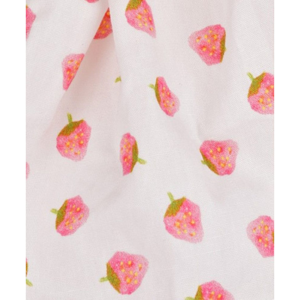 Fresas y lazo iridiscente en el pelo, en el vestido y en las zapatillas, para manipular con seguridad