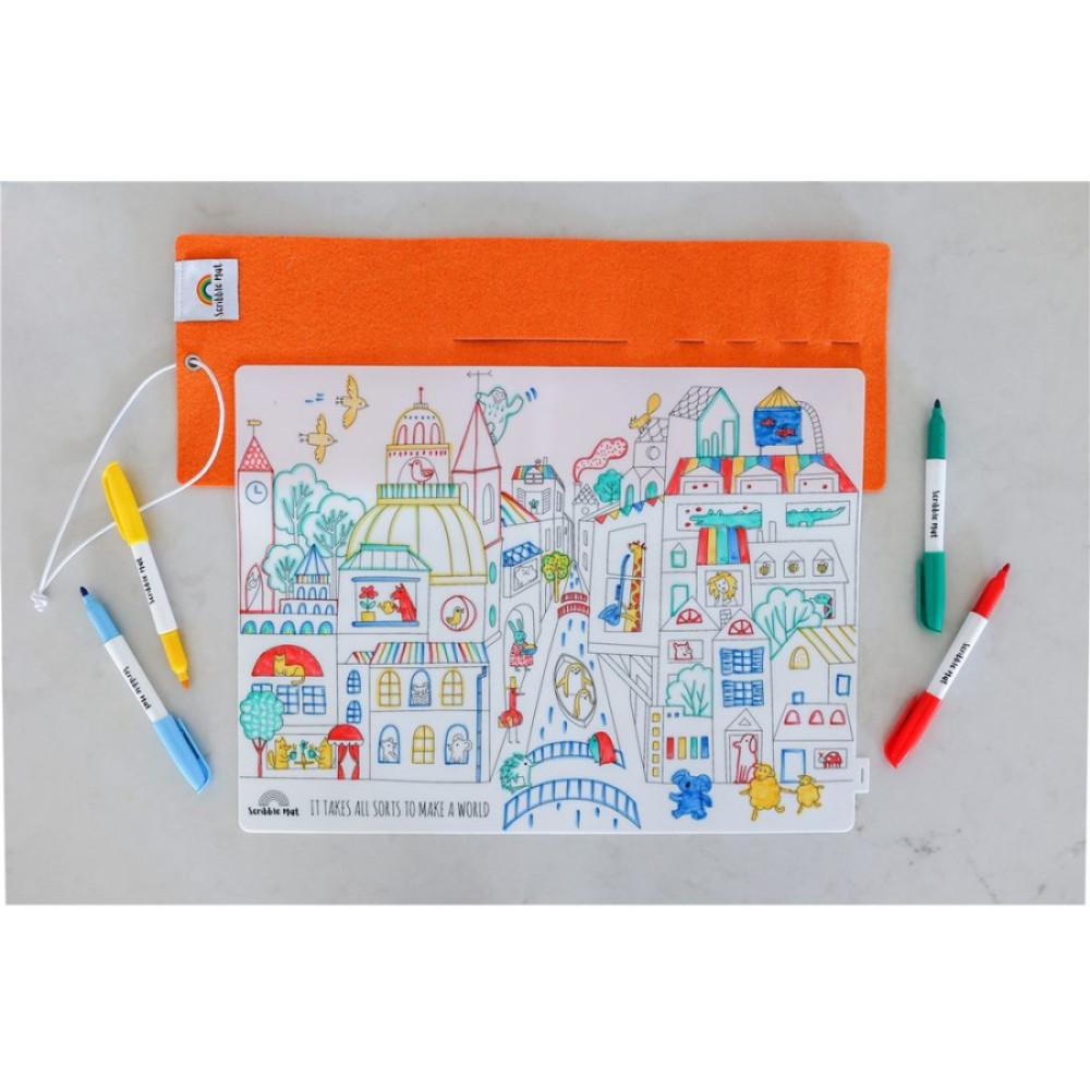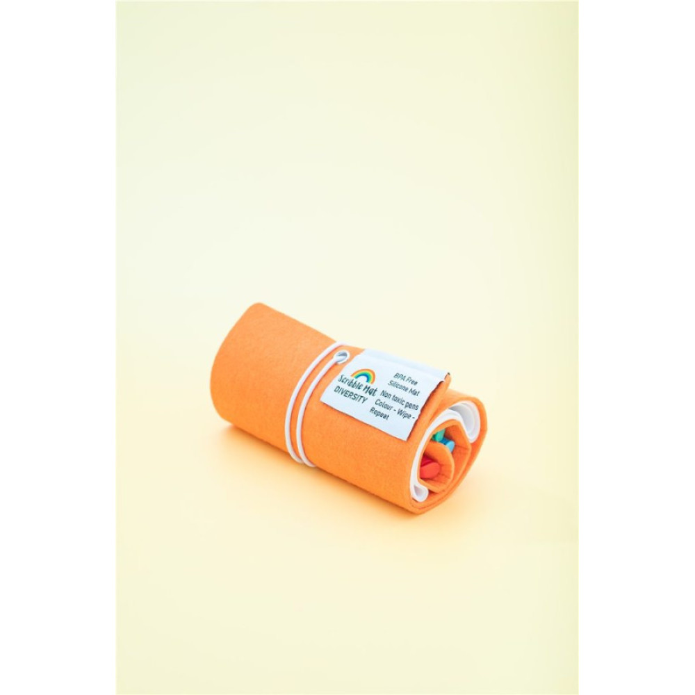 Práctica bolsita de fieltro : ¡No vuelvas a perder un lápiz con nuestra exclusiva bolsita de fieltro! Con cierre elástico, esta resistente bolsita incluye compartimentos para guardar la alfombrilla de silicona y seis lápices, ayudando a los más pequeños a mantener todo organizado al guardar sus cosas. Su diseño enrollable convierte este kit de colorear en una actividad portátil y completa para dar rienda suelta a la creatividad en cualquier lugar.
