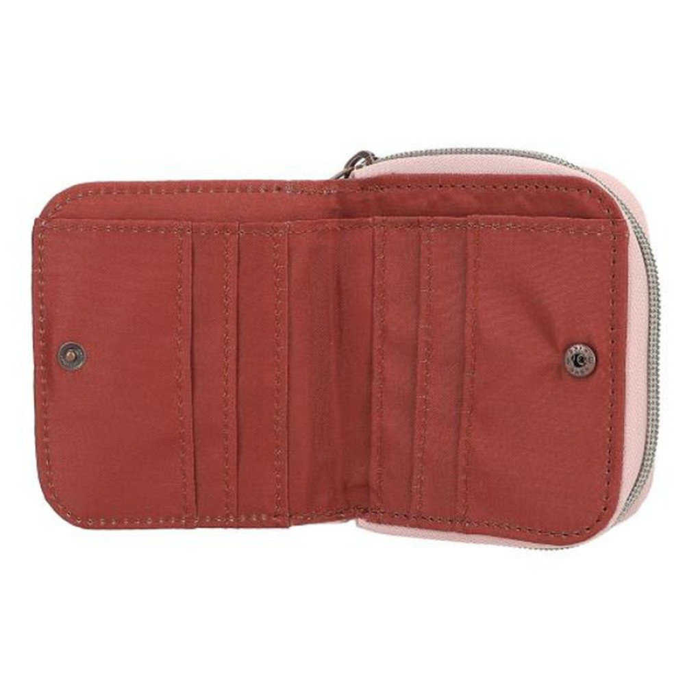 El monedero de TOPModel en colores rosa empolvado y cobre está adornado por delante con una modelo que sostiene en sus brazos dos perritos y un gatito. También la cara trasera es animaladamente bonita, ya que lleva estampado allover de preciosos perros y gatos. El monedero lleva compartimento para monedas con cremallera, billetero y varios tarjeteros. Material principal: poliéster 100 por 100.