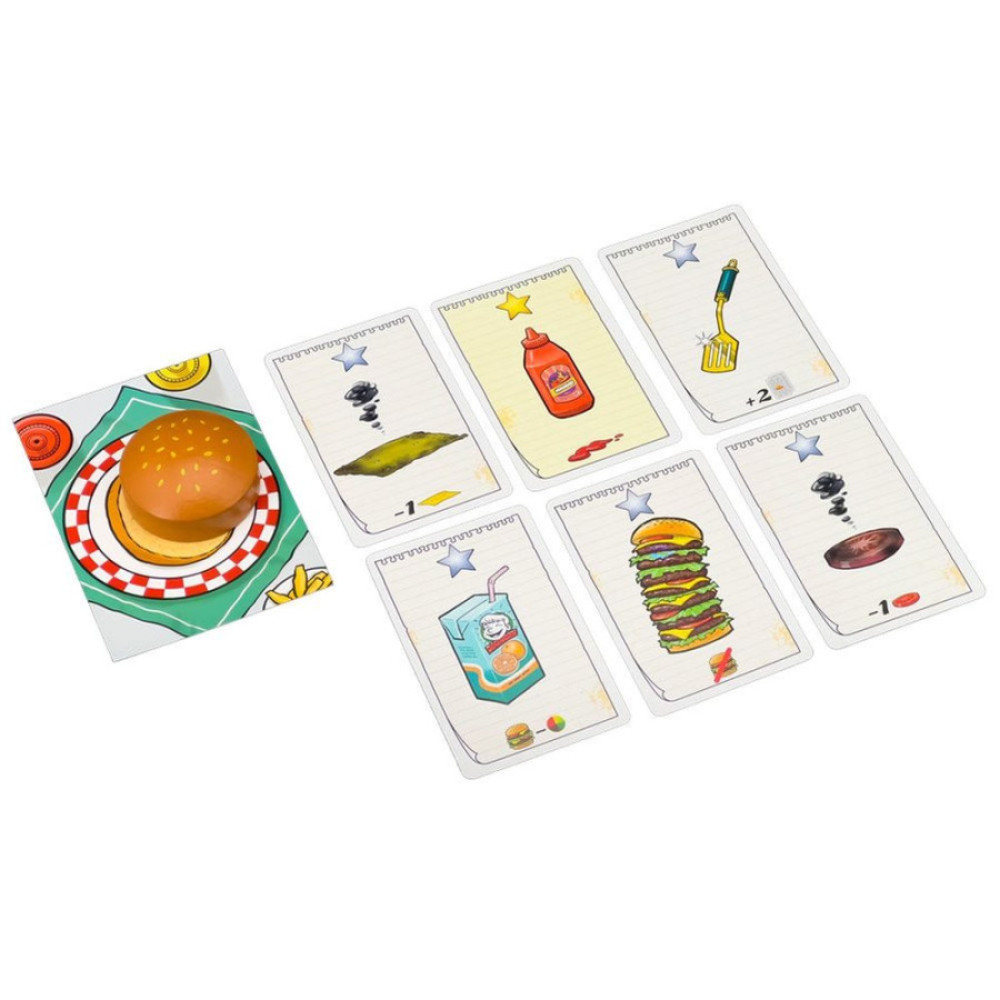 Gana quien consiga terminar correctamente el mayor número de hamburguesas en este dinámico juego de cartas ¡con una variante profesional para gourmets especialmente exigentes!