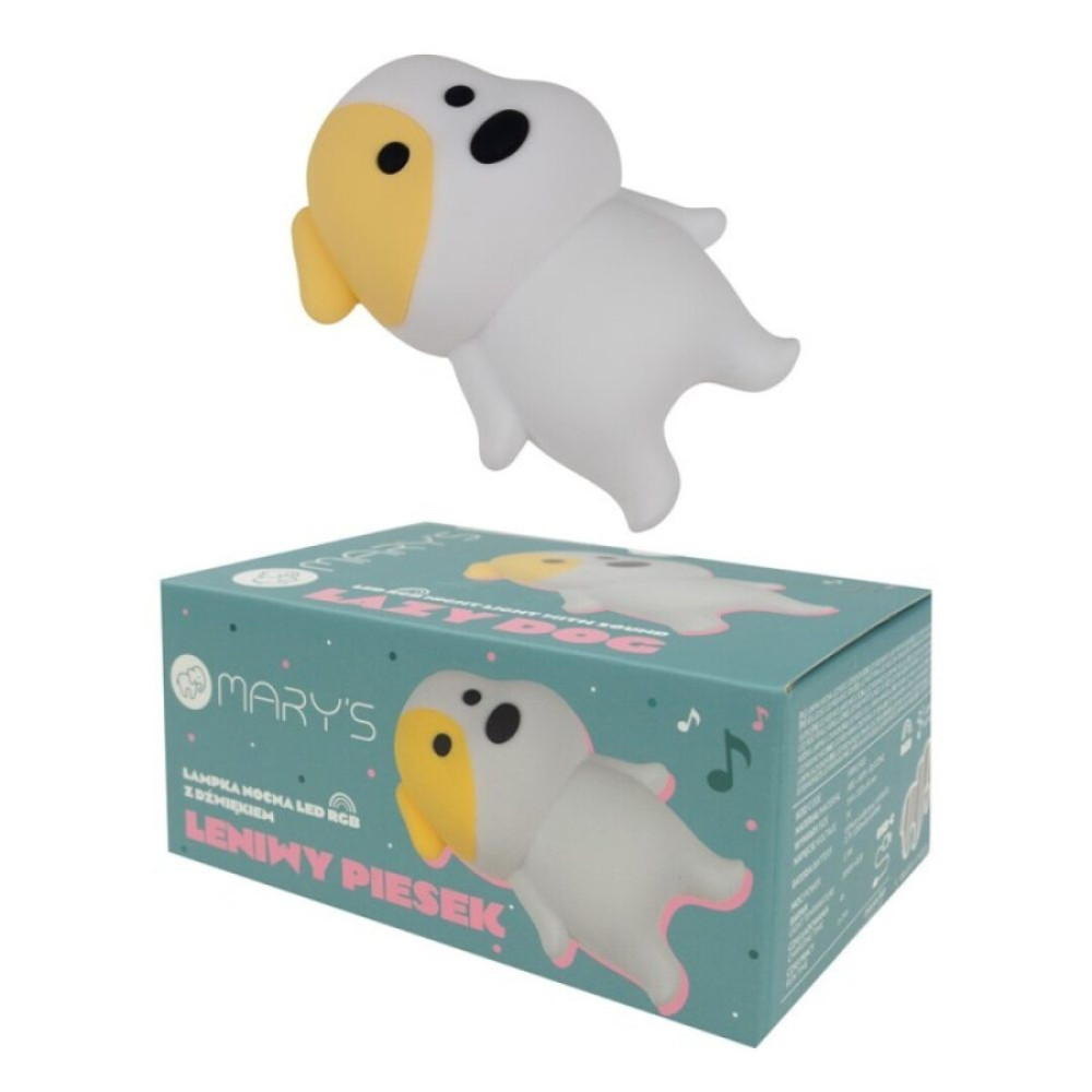 La lámpara infantil perro de Mary’s es una luz de noche suave en forma de `perrito, fabricada en silicona agradable al tacto Cuenta con iluminación LED RGB que cambia de color y un modo con sonido de ladrido .