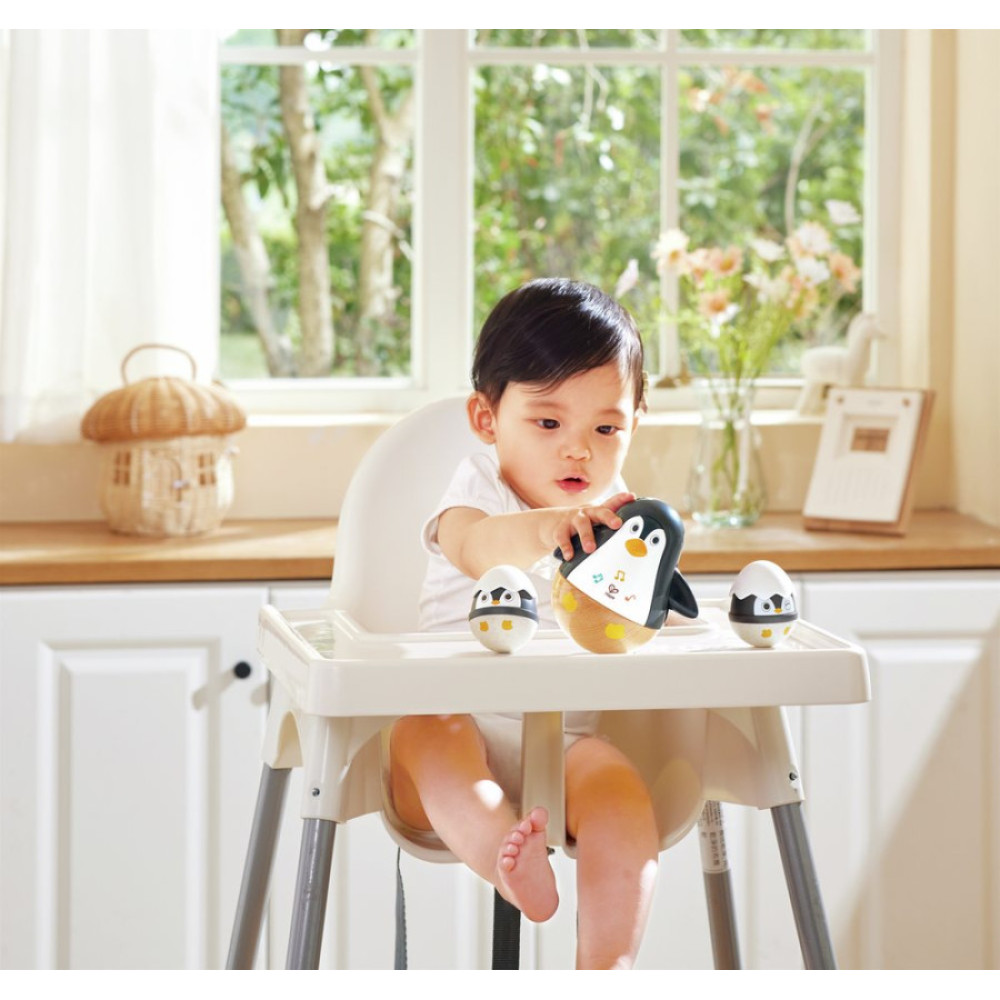 DIVERSIÓN SONAJERO: Los dos huevos de pingüino bamboleantes tienen una función de sonajero encantadora, creando sonidos alegres cuando se agitan, mejorando el disfrute del tiempo de juego.