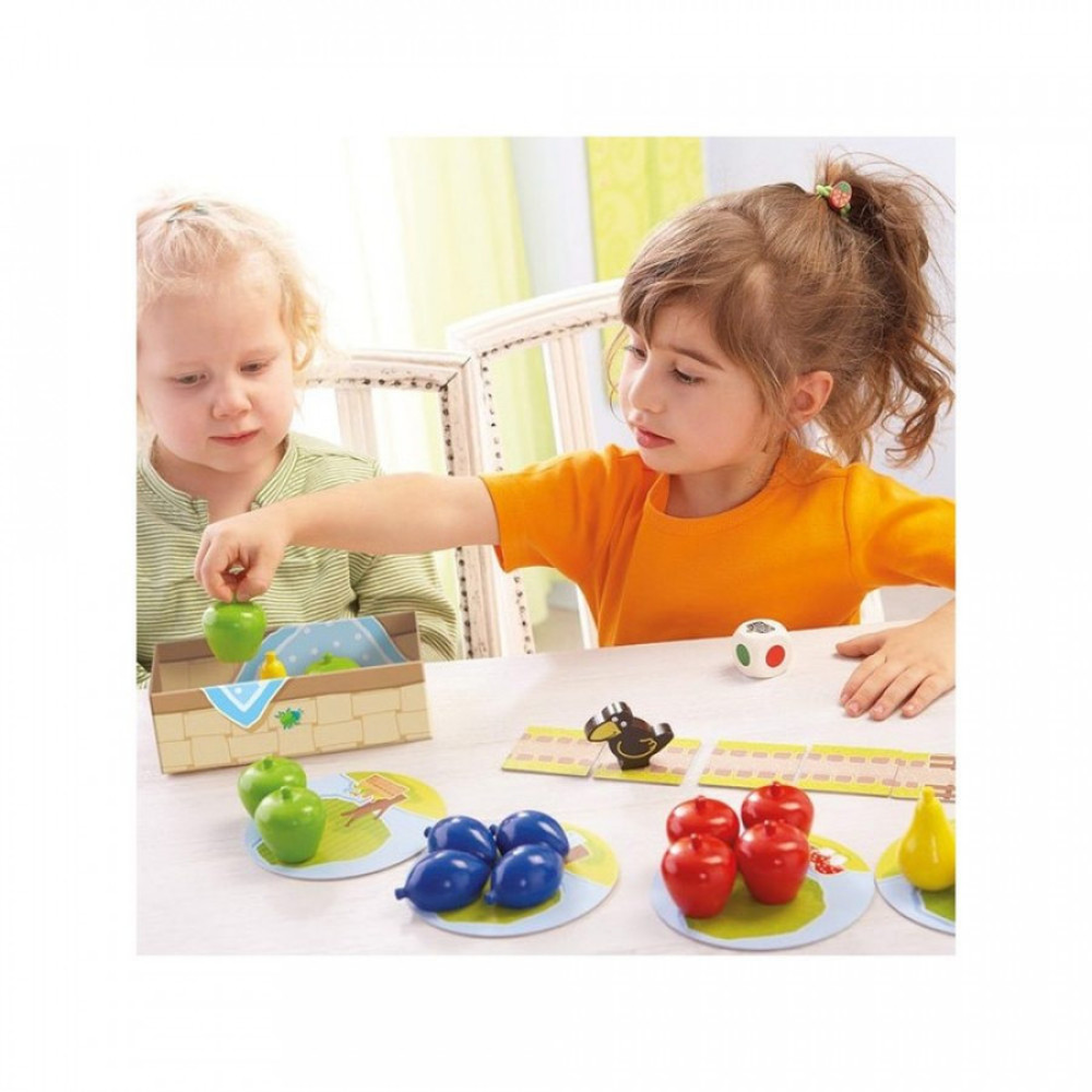 Si los niños consiguen recolectar todas las frutas en el cesto antes de que llegue el cuervo al frutal, ganarán todos la partida porque juntos fueron más rápidos que el cuervo.